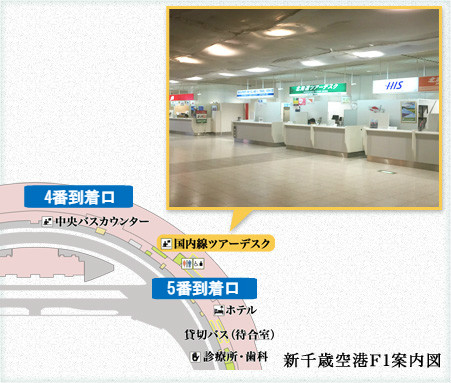 ※4番到着口と5番到着口の間の国内線ツアーデスクで
