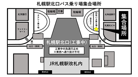 JR札幌駅・北口団体バス乗り場で受付致します。
