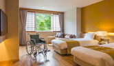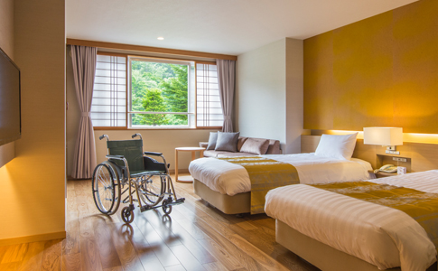 ご高齢の方におすすめの段差の少ない客室です(洋室または和洋室)。各所に手すりを設置し、大きめのバスタブを設えました。