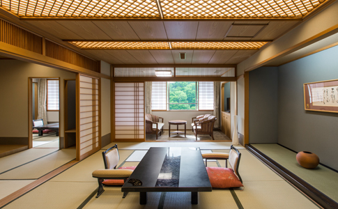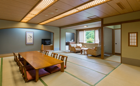 グループ・ご家族旅行に最適な大部屋タイプの客室。心地良い和畳で寛ぎながら皆様でご歓談のひとときを。